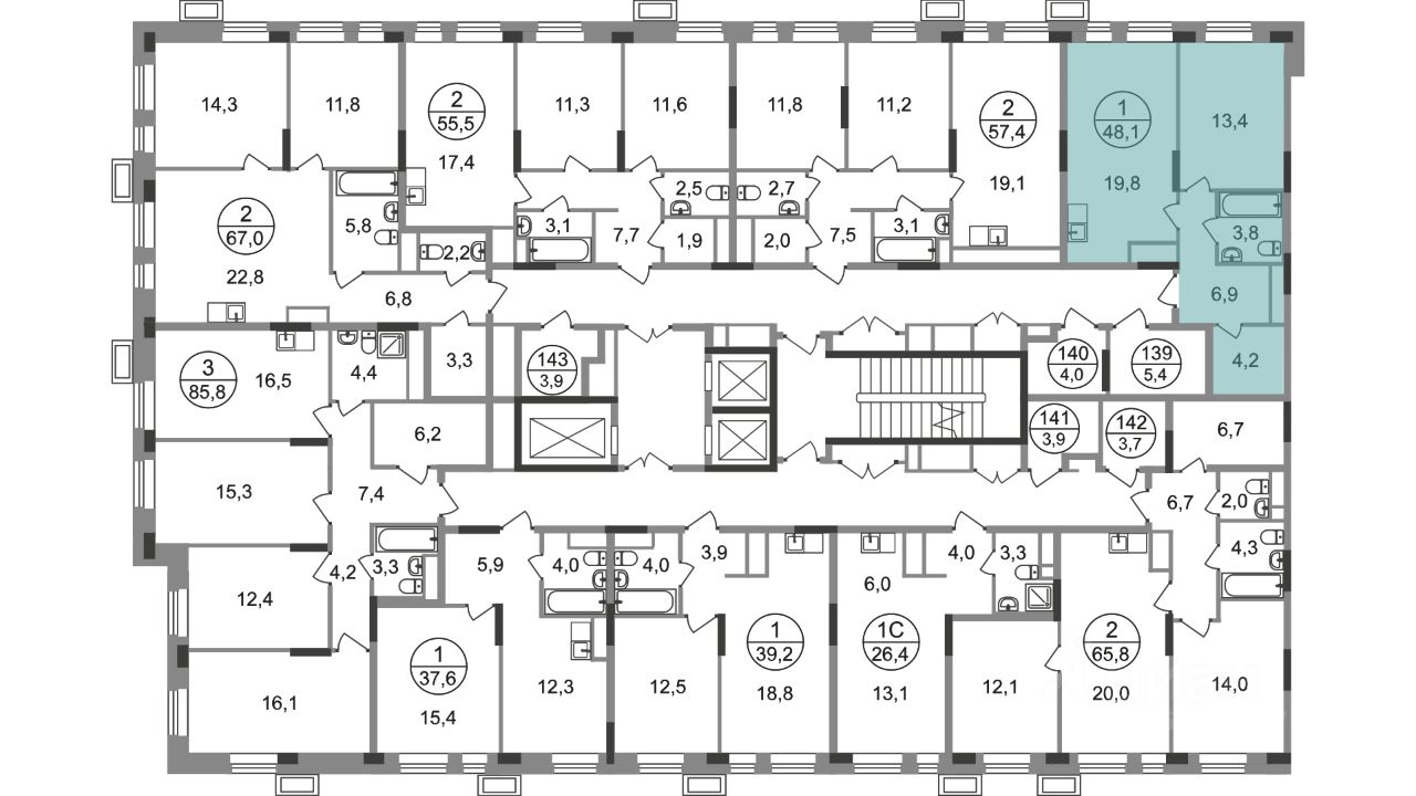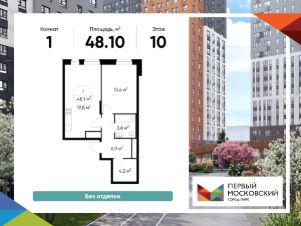 Общая площадь квартиры - 48,1 кв. м, этаж 10 из 19.