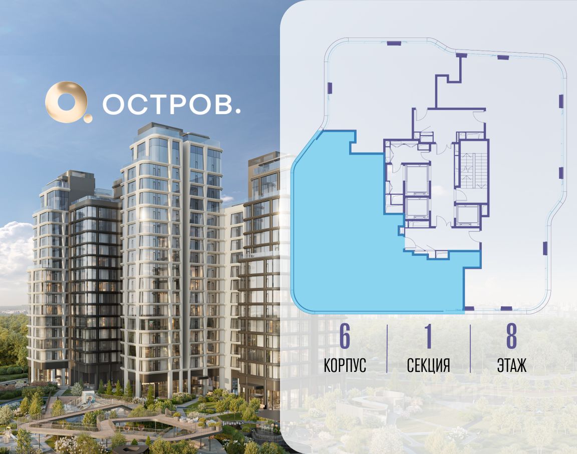 ОСТРОВ от Донстрой - жилой комплекс на западе Москвы, в Мневниковской пойме. Уникальное преимущество комплекса - в том, что он обособлен от города рекой и природным парком (650 га). Благодаря природному окружению эта территория имеет лучший экологический рейтинг в столице. Кварталы ОСТРОВА объединены ландшафтным дизайном в единое пространство - с набережными и Центральным бульваром. На ОСТРОВЕ любые объекты, необходимые для полноценной жизни и отдыха, находятся на расстоянии 15-минутной прогулки. Торговый центр и супермаркеты, кафе и рестораны, фитнес, салоны красоты, школы и детские сады. А также крупнейший в Москве спортивный кластер.