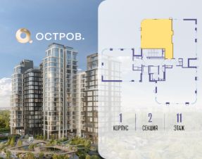 Продаётся 2-комн. квартира от застройщика: общая площадь 89.30 м², жилая 27.80 м², кухня 35.50 м², 11-й этаж, жилой квартал "Остров 12", корпус 1 (секция 2). Срок сдачи: 1 квартал 2029 года.