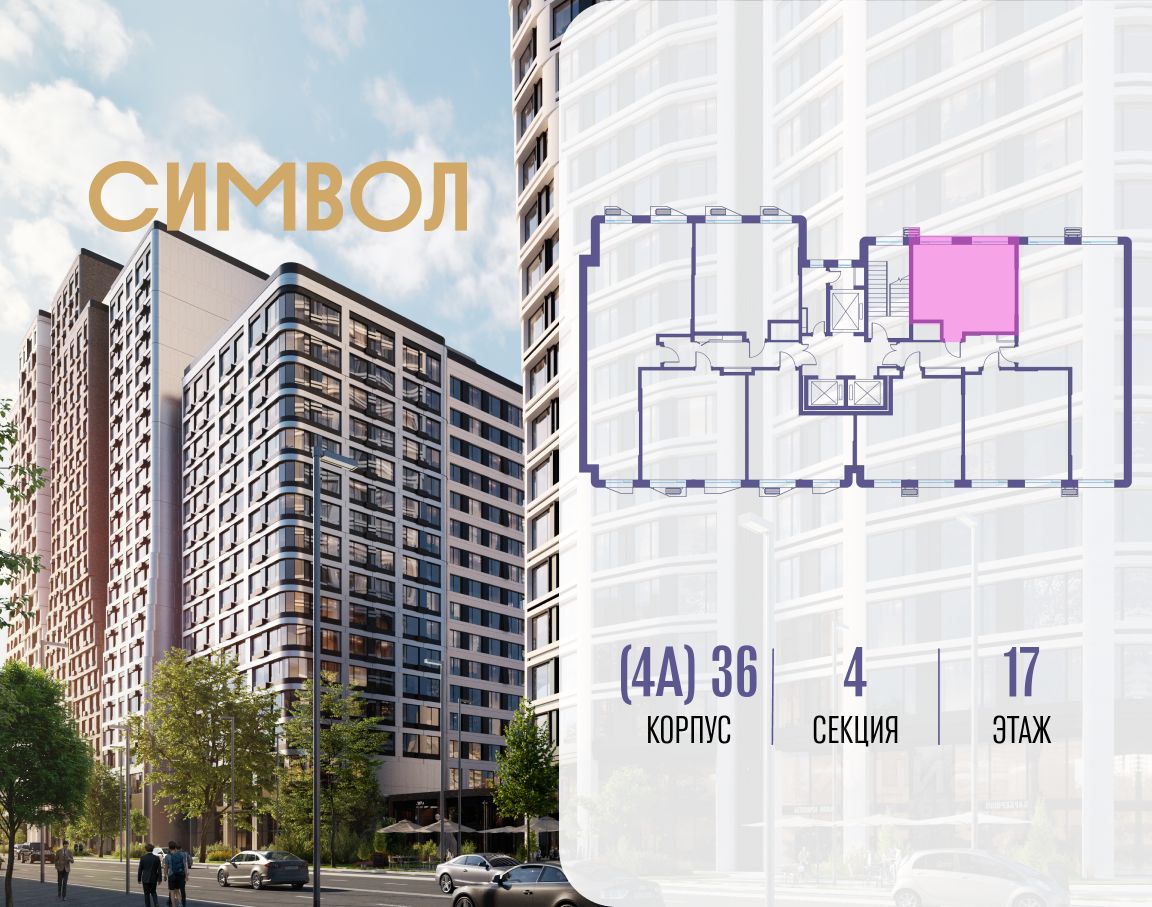 Продается квартира-студия от застройщика: общая площадь 35.30 м², жилая 10.00 м², кухня 14.80 м², 17-й этаж, жилой квартал "Гордость", корпус 36 (секция 4). Срок сдачи: 2 квартал 2029 года.