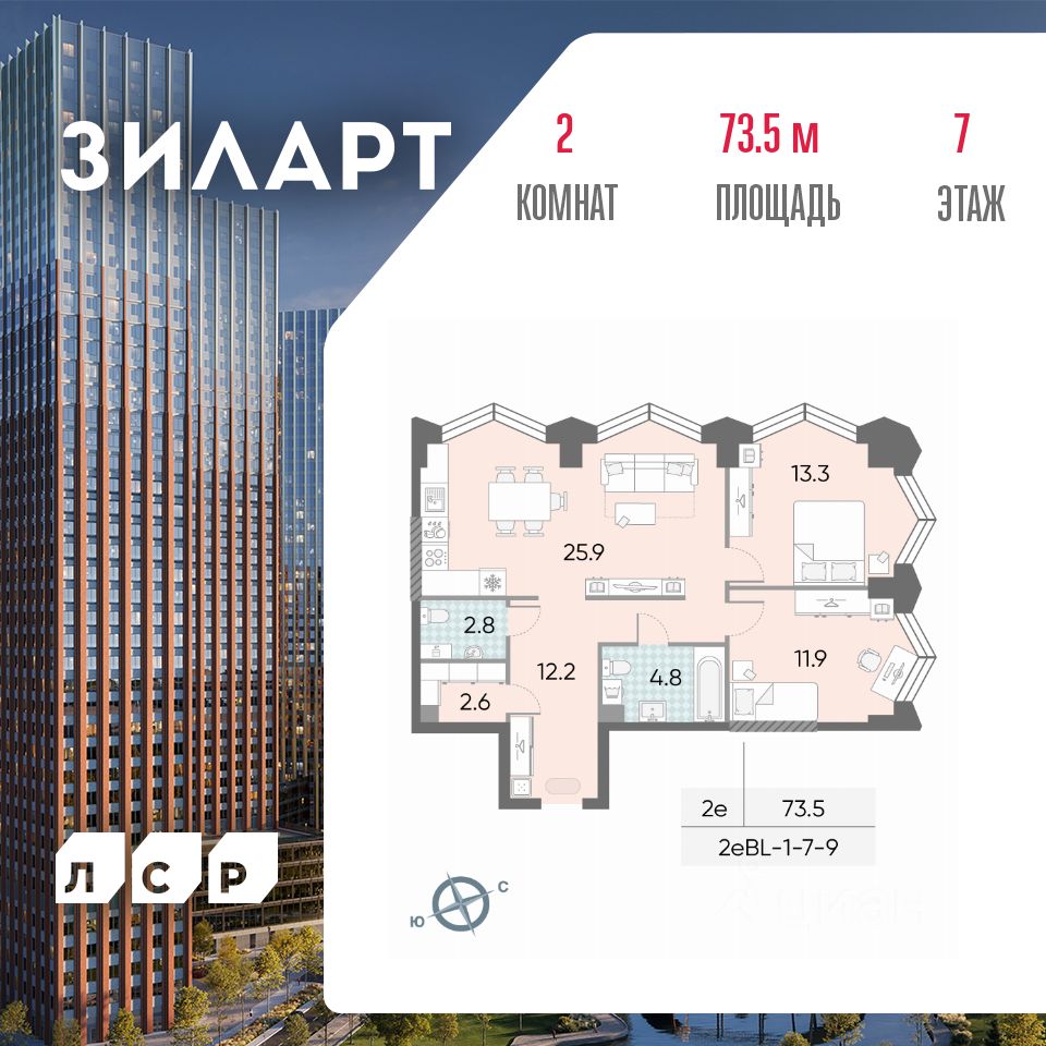 Продается 2-комн. кв-ра площадью 73.50 кв.м на 7 этаже 43 этажного монолитно-кирпичного дома в ЖК "ЗИЛАРТ" от Группа ЛСР. ЗИЛАРТ СПАРК — новый дом бизнес-класса в жилом квартале "ЗИЛАРТ" высотой 150 метров. Он сочетает в себе современную архитектуру, передовые технологии и восхитительные виды на ландшафтный парк "Тюфелева Роща" и бульвар Братьев Весниных. Близкое расположение к музейно-выставочному центру "Коллекция" и концертному залу создает вдохновляющую атмосферу места, где переплетаются жизнь и творчество.