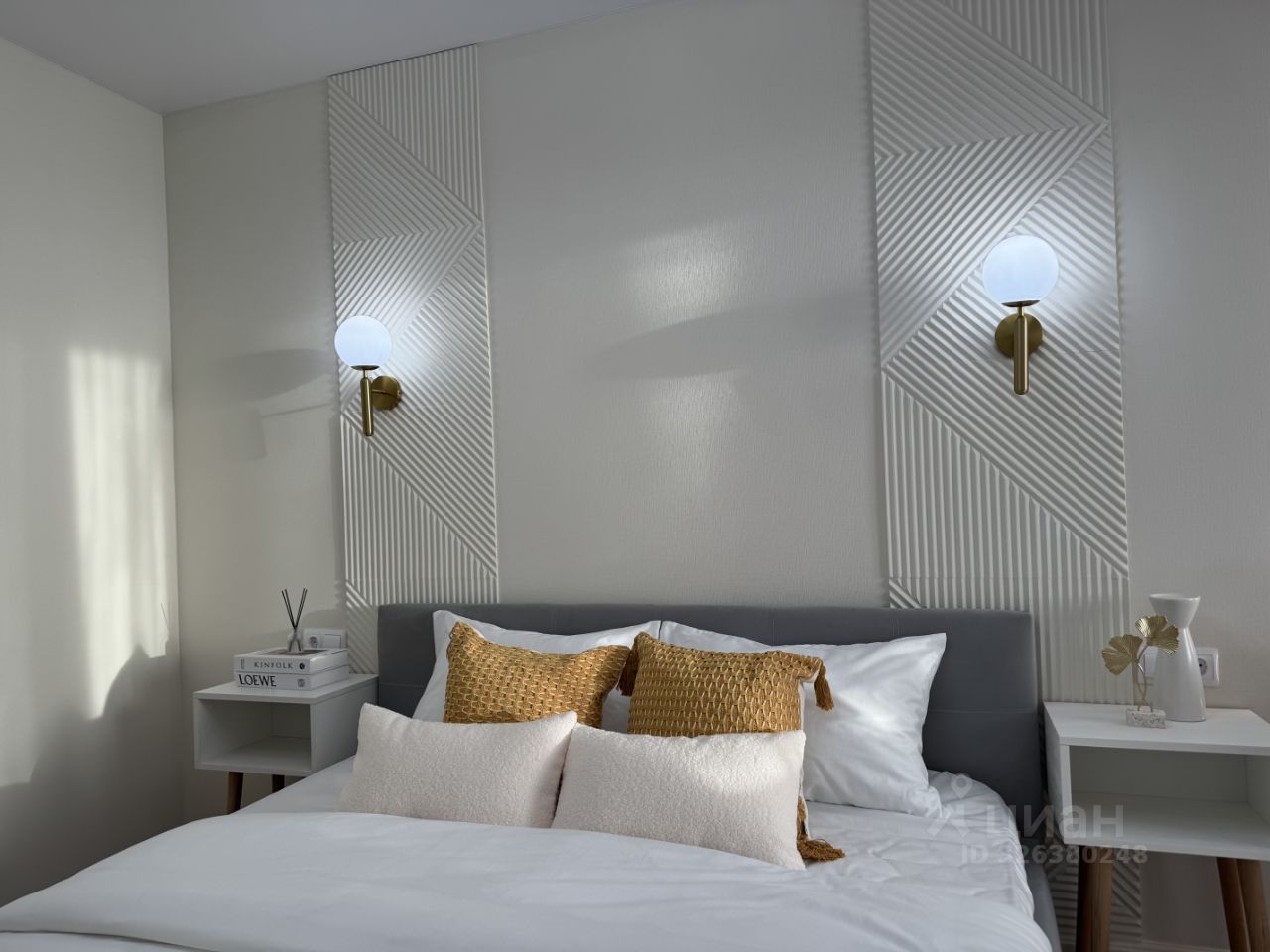 Двухкомнатная квартира выполнена в светлых тонах, с цветовыми акцентами расставлены и в трендовом горчичном оттенке.
