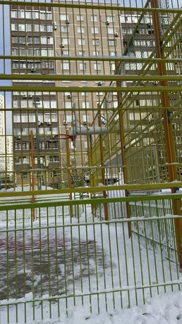 Из окон квартиры открывается панорамный вид в тихий двор с современными спортивной , баскетбольной и детской площадками и сквером .