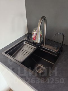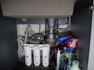 - Встроенный кухонный гарнитур: электрическая плита с варочной панелью и встроенной вытяжкой. Современная широкая мойка с комплектующими, установлен фильтр питьевой воды. Духовой шкаф с СВЧ. Полка с подсветкой над рабочей зоной.