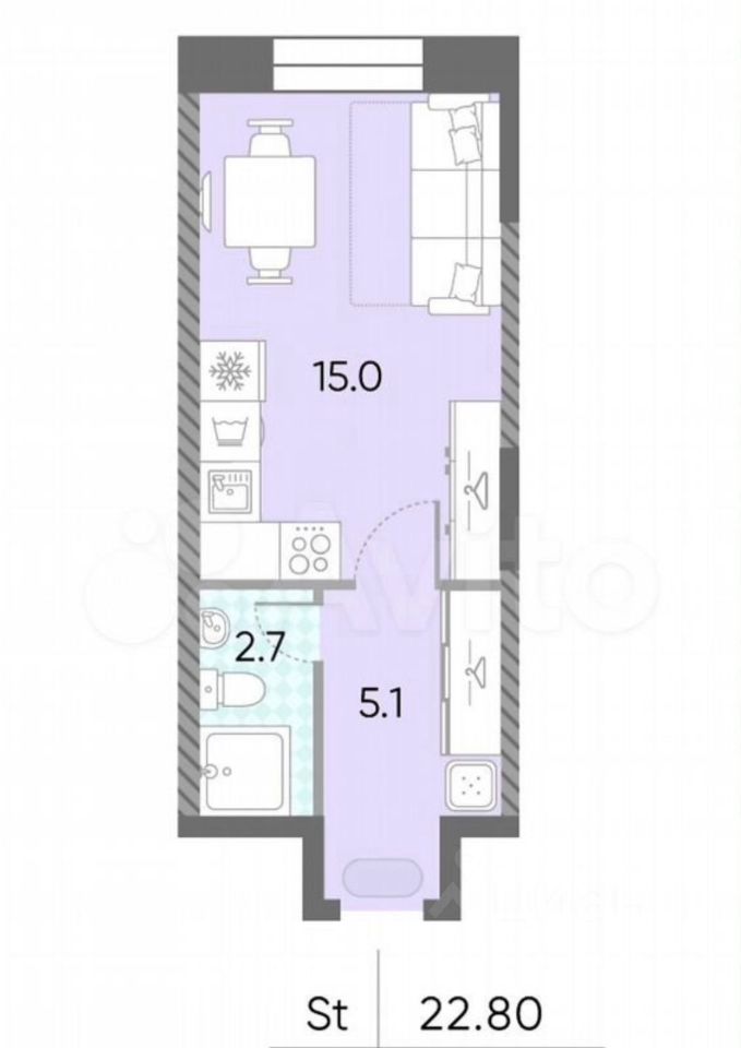 Квaртиpа - cтудия плoщaдью 22,8 м2