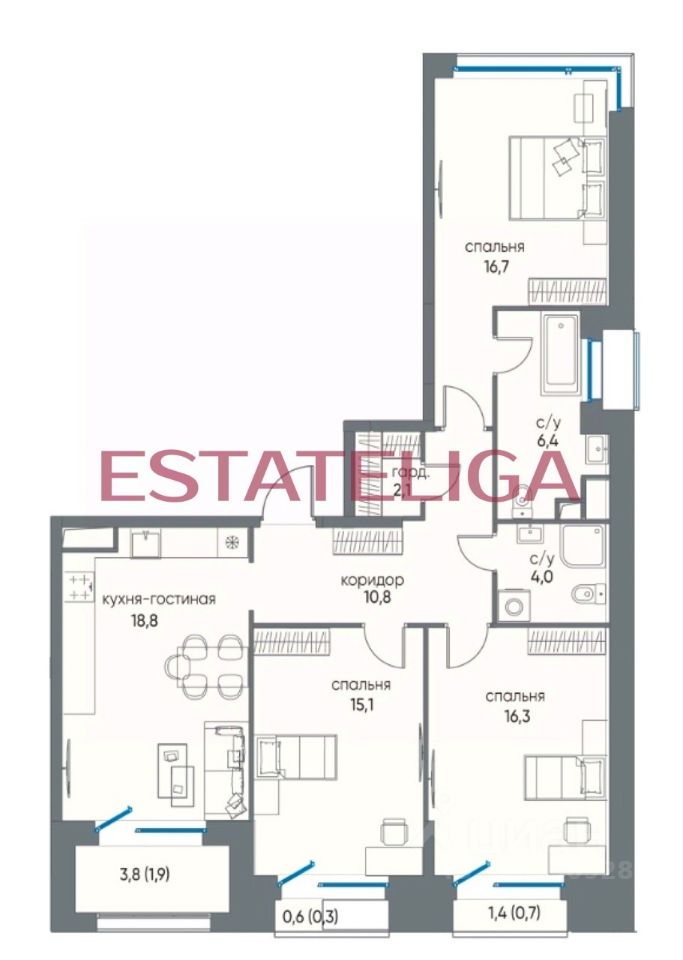 Id 60353. РОСКОШНАЯ ТРЕШКА В 6 КВАРТАЛЕ ОСТРОВА!