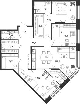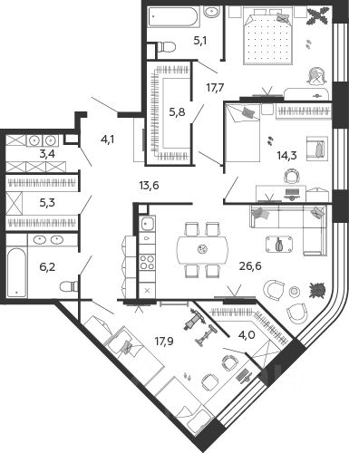 Продаётся 3-комнатная квартира в строящемся доме (Корпус 4.1 (2 очередь 1 этап)), срок сдачи: I-кв. 2026, общей площадью 124 кв.м., на 7 этаже. Это город в городе, который не подстраивается под старые рамки, а задает новую планку и стандарт жилого района в России.