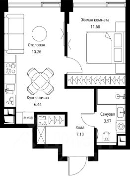 Продаётся 1-комнатная квартира общей площадью 39.45 м² с предчистовой отделкой в ЖК City Вау, квартале North, на 10-м этаже 21 этажного дома.