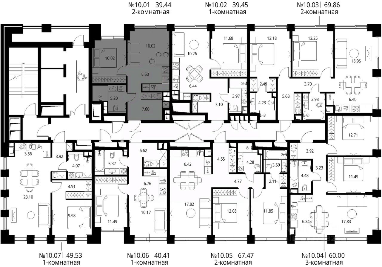 Продаётся 1-комнатная квартира общей площадью 39.44 м² с предчистовой отделкой в ЖК Сити Бэй, квартале Норс, на 10-м этаже 21 этажного дома.