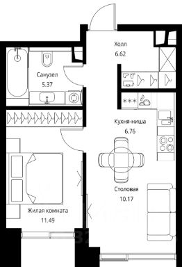 Продаётся 1-комнатная квартира общей площадью 40.41 м² с предчистовой отделкой в ЖК City Вау, квартале North, на 10-м этаже 21 этажного дома.