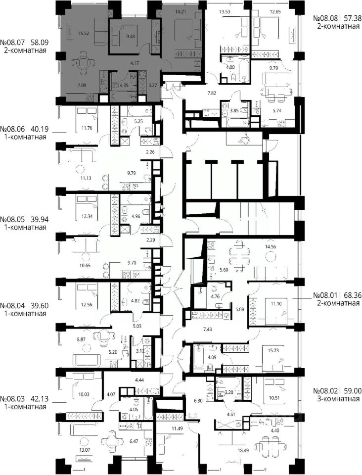 Продаётся 2-комнатная квартира общей площадью 58.09 м² с предчистовой отделкой в ЖК Сити Бэй, квартале Норс, на 8-м этаже 27 этажного дома.