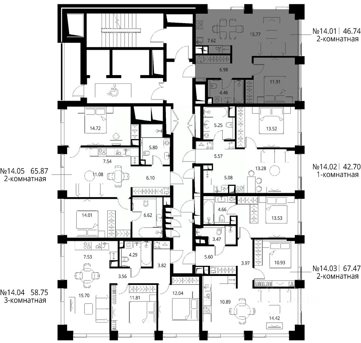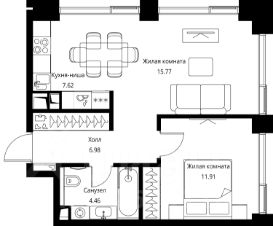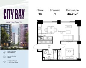 Продаётся 1-комнатная квартира общей площадью 46.74 м² с предчистовой отделкой в ЖК City Вау, квартале North, на 14-м этаже 24 этажного дома.