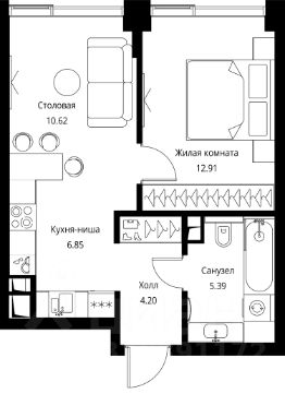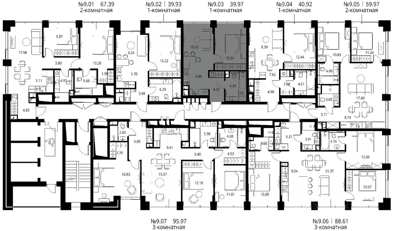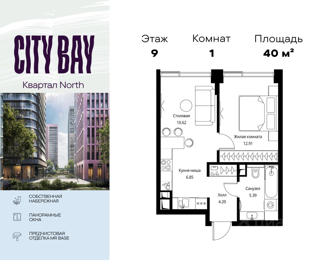 Продаётся 1-комнатная квартира общей площадью 39.97 м² с предчистовой отделкой в ЖК City Вау, квартале North, на 9-м этаже 27 этажного дома.