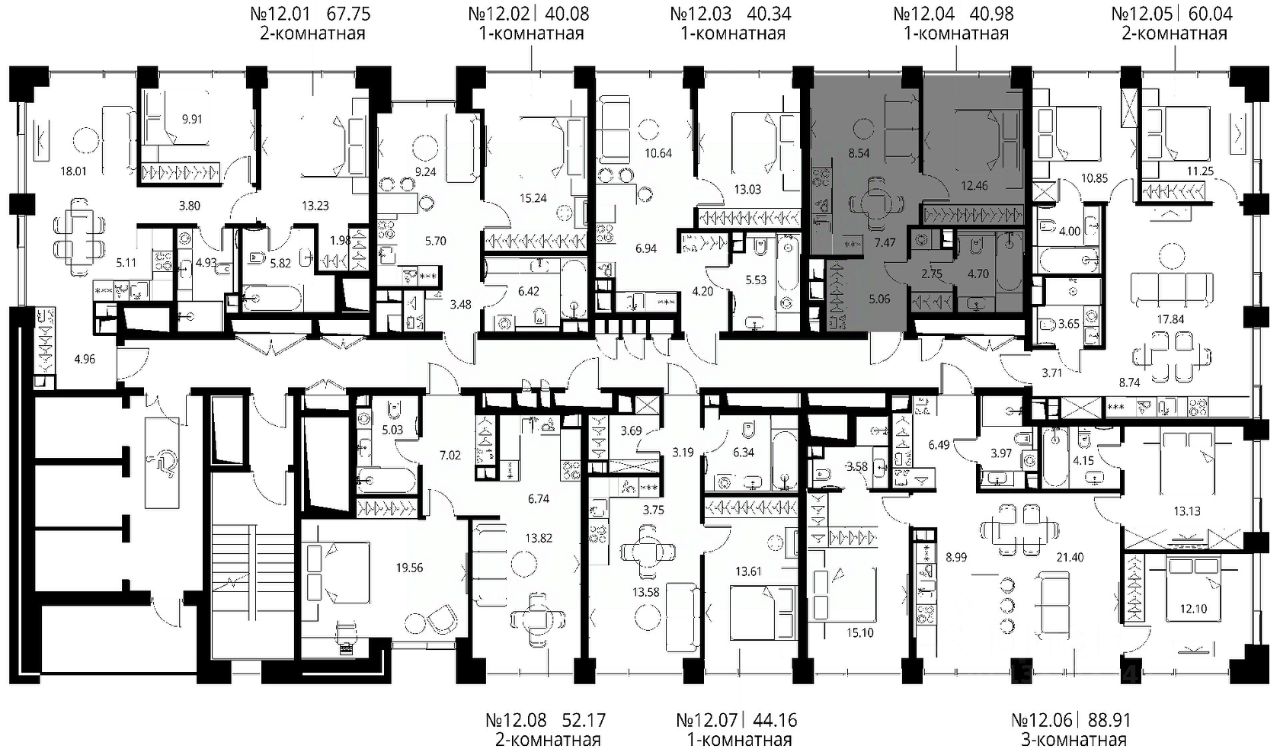 Продаётся 1-комнатная квартира общей площадью 40.98 м² с предчистовой отделкой в ЖК Сити Бэй, квартале Норс, на 12-м этаже 27 этажного дома.