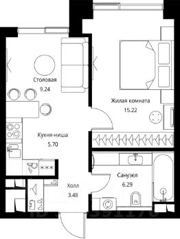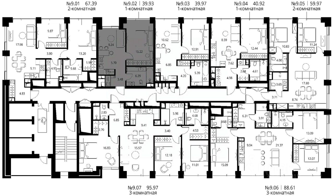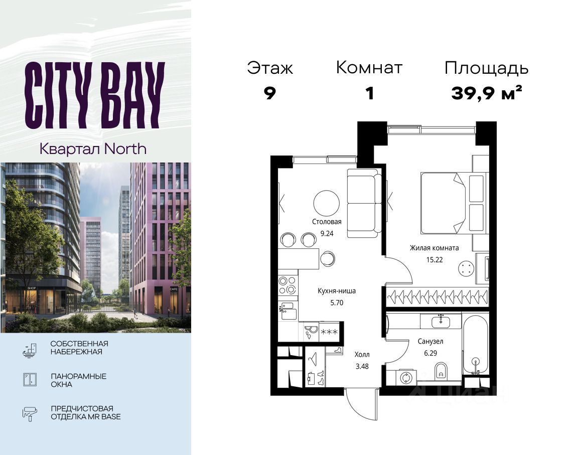 Продаётся 1-комнатная квартира общей площадью 39.93 м² с предчистовой отделкой в ЖК City Вау, квартале North, на 9-м этаже 27 этажного дома.
