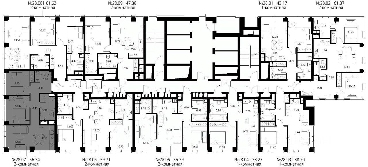 Продаётся 2-комнатная квартира общей площадью 56.34 м² с предчистовой отделкой в ЖК Сити Бэй, квартале Норс, на 28-м этаже 48 этажного дома.