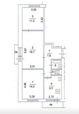 Общая площадь квартиры без учета двух балконов (один из которых имеет вход из кухни, второй из комнаты) 64,6 кв.м., сан узел раздельный, две комнаты смежные, но их можно изолировать, кухня площадью 9,5 кв.м.