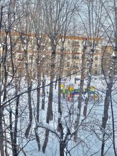 Окна в тихий, зеленый двор;