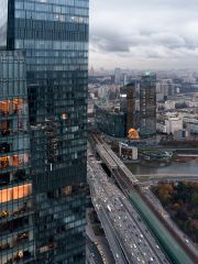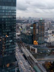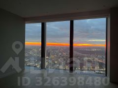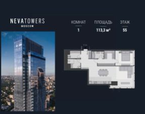 Площадь — 113.3 м², 55 этаж, вид на башни Сити.