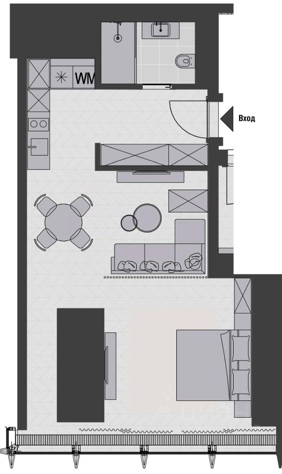 Предлагается апартамент с чистовой отделкой, оборудованный техникой SMEG, в сданном и заселённом комплексе.