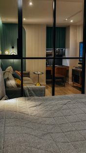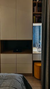спальная комната поделена на две зоны с отдельными входами: