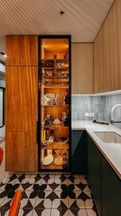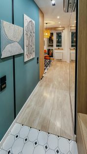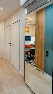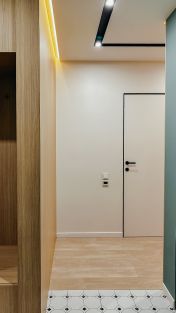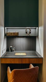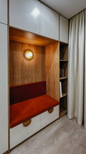 Особый подход был уделен техническому оснащению квартиры, зонам хранения вещей и декорированию