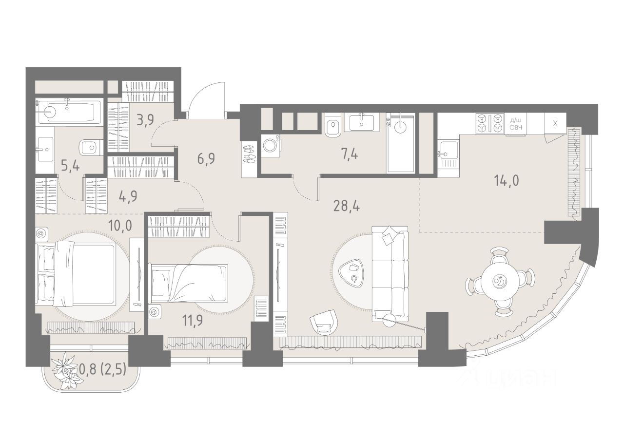 Продуманная европланировка, которую легко зонировать под ваши запросы. Потолки от 3,1 м.