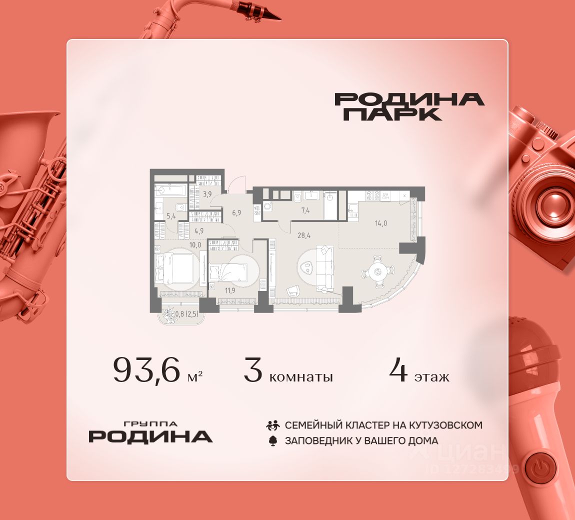 В жилом кластере Родина Парк рядом с природным заказником Долина реки Сетунь продаётся 3-комнатная квартира.