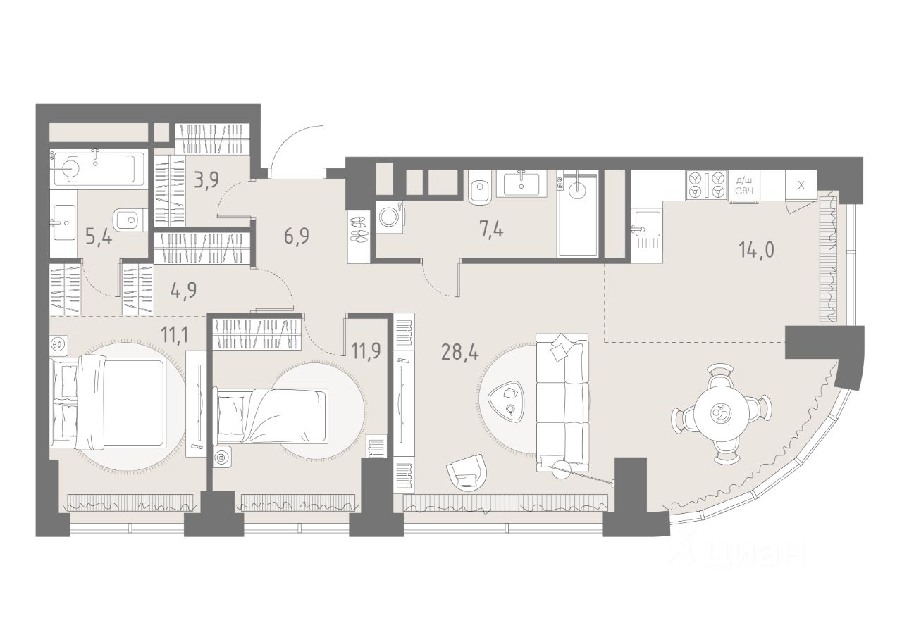 Продуманная европланировка, которую легко зонировать под ваши запросы. Потолки от 3,1 м.