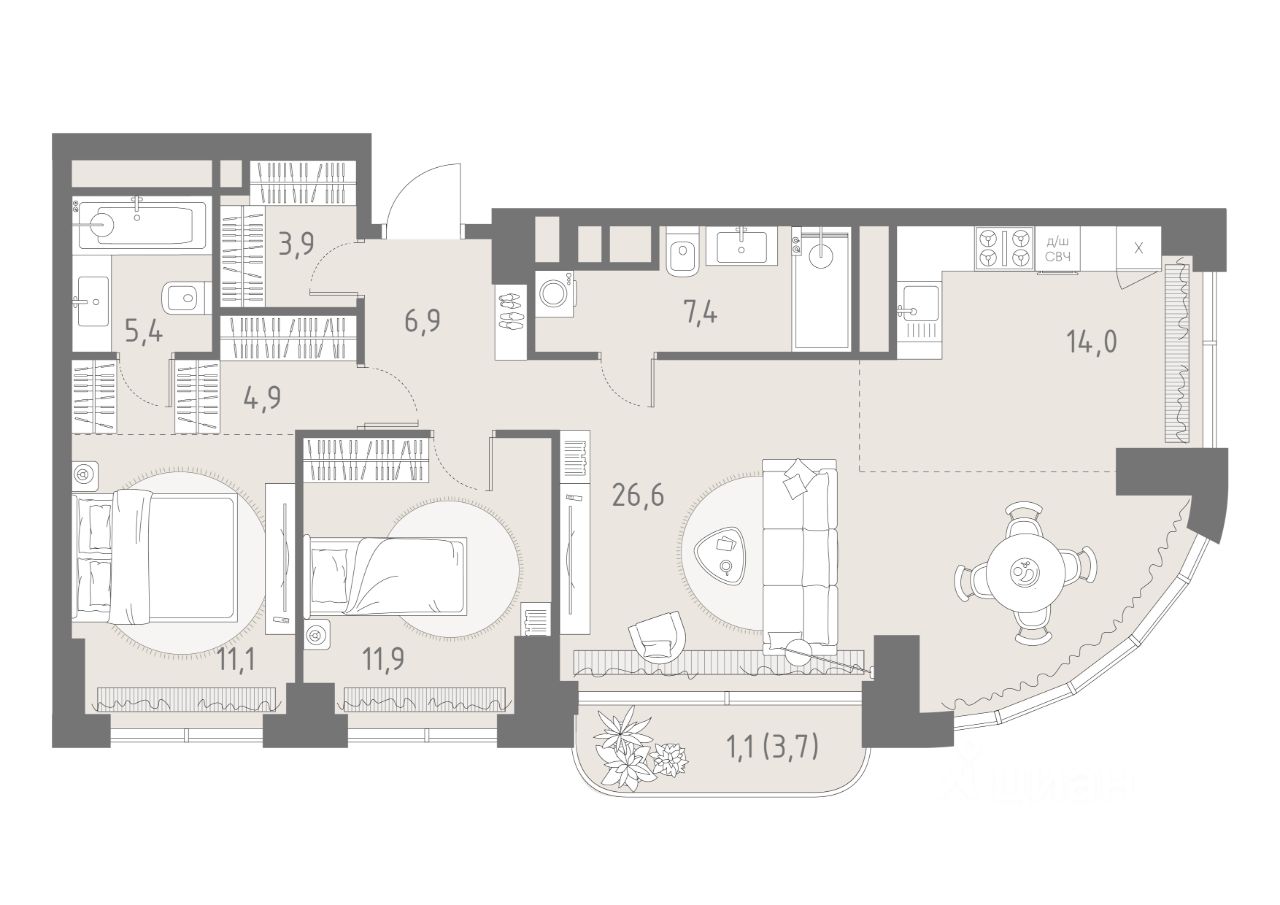 Продуманная европланировка, которую легко зонировать под ваши запросы. Потолки от 3,1 м.