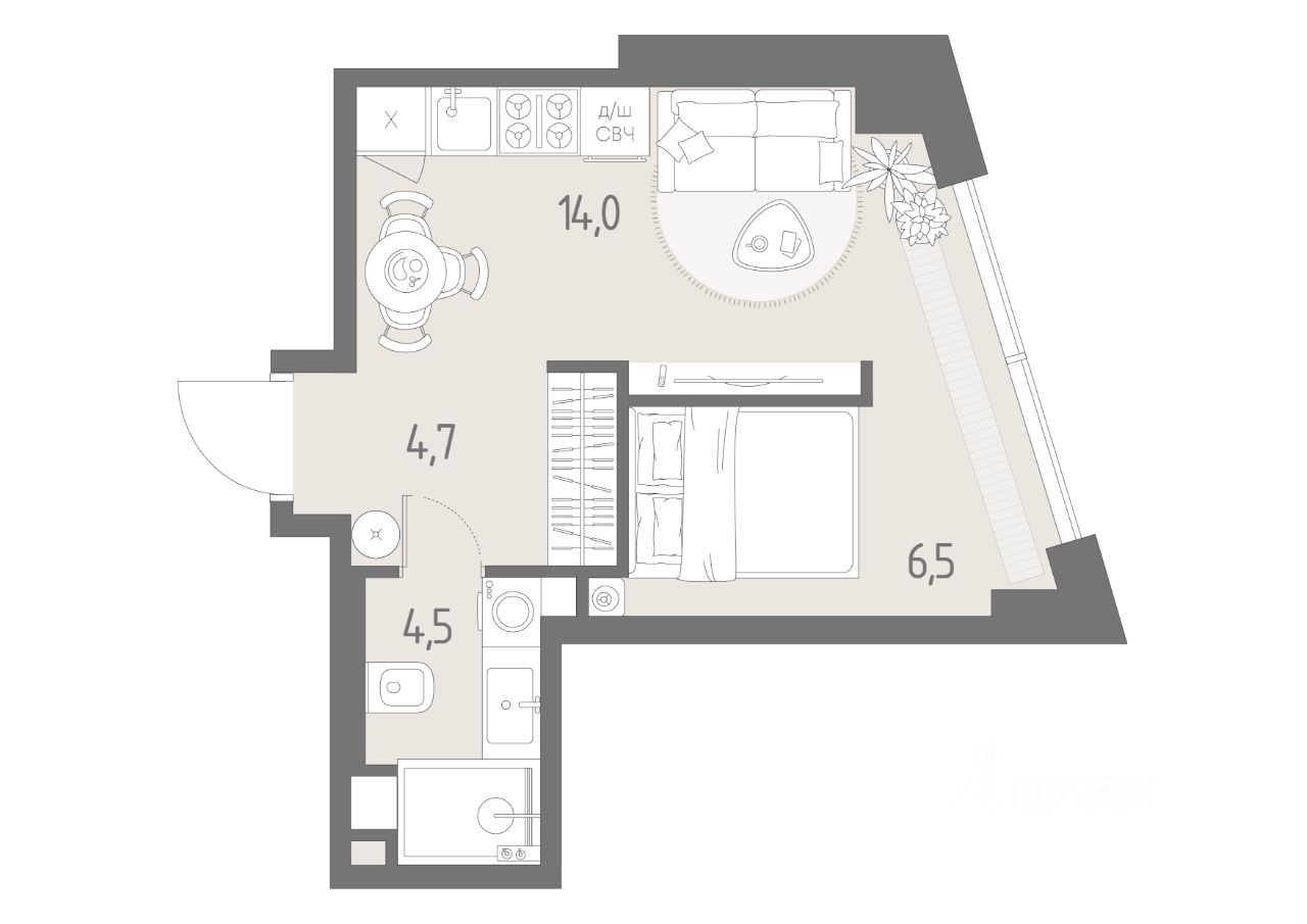 Продуманная европланировка, которую легко зонировать под ваши запросы. Потолки от 3,1 м.