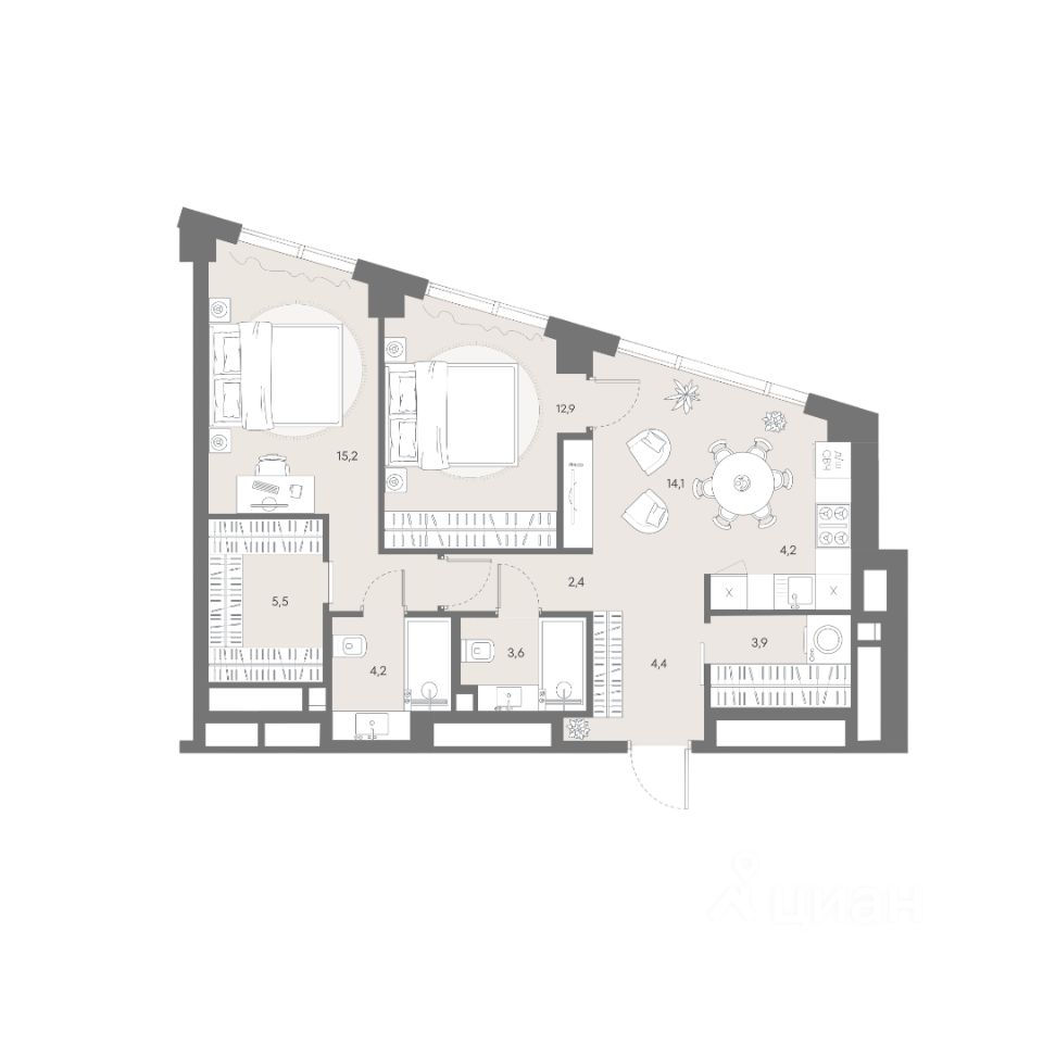 Продуманная европланировка, которую легко зонировать под ваши запросы. Потолки от 3,1 м.