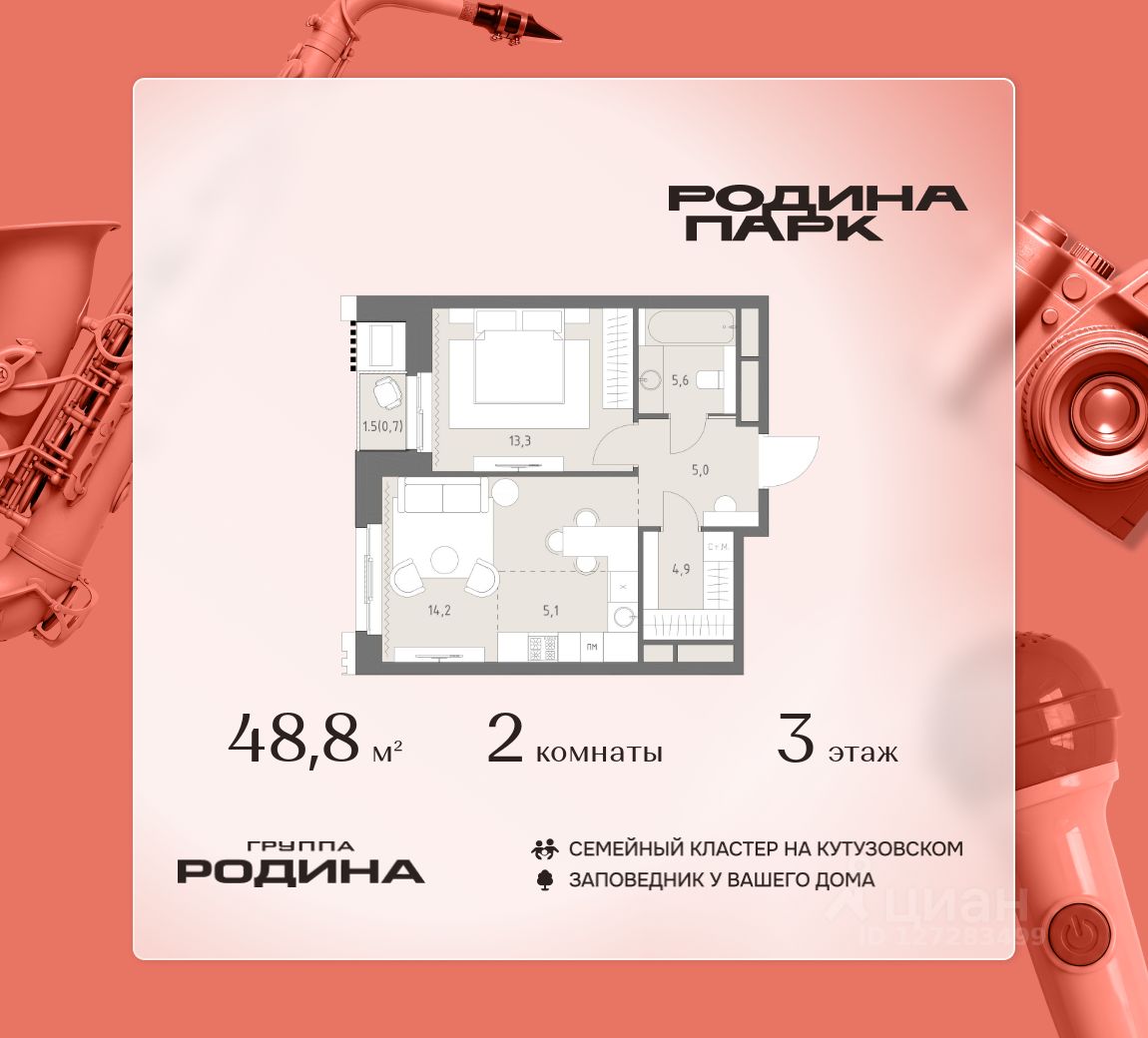 В жилом кластере Родина Парк рядом с природным заказником Долина реки Сетунь продаётся 2-комнатная квартира. Продуманная европланировка, которую легко зонировать под ваши запросы. Потолки от 3,1 м. "Родина Парк" — премиальный семейный кластер с образовательным медиакластером, строящийся на западе Москвы в окружении природного заповедника "Долина реки Сетуни". • Скидки недели на избранный пул лотов • Рассрочка 0% на выгодных условиях до 2 лет • Семейная ипотека, подбор комбо-вариантов ипотечных программ прямо в офисе продаж • Скидки 8% при 100% оплате или ипотеке. ЛОКАЦИЯ: 8 минут пешком до станции БКЛ "Давыдково". 12 минут на автомобиле до Нового Арбата. Удобные выезды на Кутузовский проспект, Аминьевское шоссе. ИНФРАСТРУКТУРА И СЕРВИСЫ ДЛЯ ЖИТЕЛЕЙ - Уникальная экосистема для развития, здоровья и творчества на территории 3,5 Га: - Первый в России образовательный медиакластер (с участием Русской медиагруппы) для творческого развития детей и взрослых с возможностью получить востребованную профессию в сфере шоу-бизнеса. - Инфраструктура и сервисы для семей с детьми на территории жилого кластера (частный детский сад, детские игровые пространства, творческие студии для занятий музыкой и танцами, безопасная и комфортная среда для детей и родителей), событийно-культурная площадка для проведения семейного досуга); - Здоровая среда (биохакинг-центр, фитнес-зал и спортивная инфраструктура во дворе, медитационные пространства, инженерные решения для освещения, свежего воздуха и очистки воды, сервисы красоты и поддержания активного долголетия); - Сервисы заботы (инфраструктура комфорта - подземный паркинг, кладовые, колясочные, консьерж- сервис, умный дом, мобильное приложение, профессиональная управляющая компания, сервисы охраны и обеспечение абсолютной безопасности) - Комьюнити резидентов (социальные пространства для дружеского и делового общения - летний атриум с уличным кинотеатром, зоны отдыха, кафе и рестораны, комьюнити-сервис с культурно- событийной программой в медиакластере); - Модуль благосостояния (комфортные пространства для работы и саморазвития - коворкинги и переговорные). ИНФРАСТРУКТУРА РАЙОНА: Насыщенная образовательная среда: филиалы МГИМО, МГУ, МГТУ, Сколково. Топовые школы: 6 лучших частных школ Москвы и области (Forbes) в 10 минутах езды. Природное окружение для пеших прогулок, спорта и отдыха. "Родина Парк" — это место, где растут и дети, и ваши возможности. Экосистема, где всё подчинено развитию — физически, профессионально, творчески.