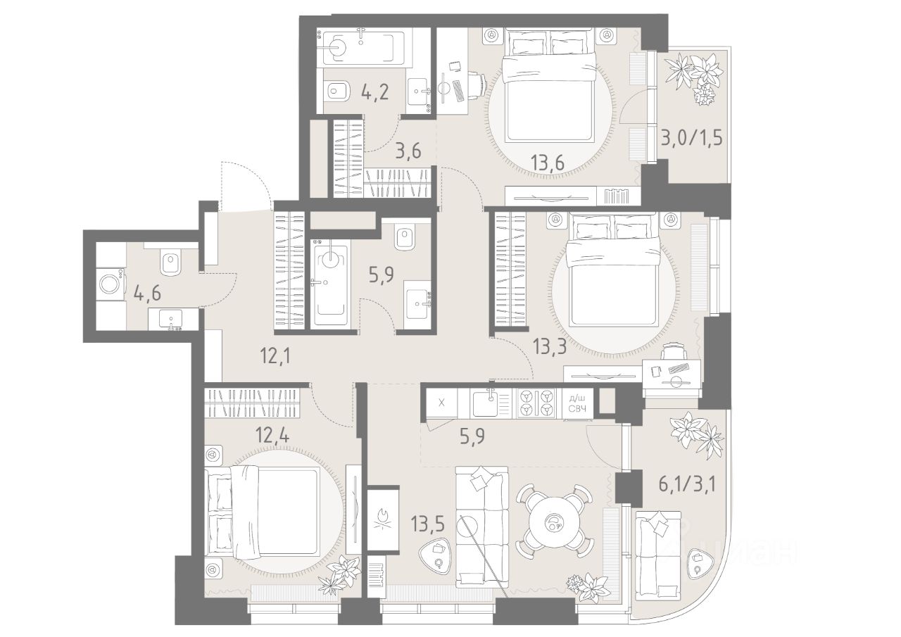 В жилом кластере Родина Парк рядом с природным заказником Долина реки Сетунь продаётся 4-комнатная квартира. Продуманная европланировка, которую легко зонировать под ваши запросы. Потолки от 3,1 м. "Родина Парк" — премиальный семейный кластер с образовательным медиакластером, строящийся на западе Москвы в окружении природного заповедника "Долина реки Сетуни". • Скидки недели на избранный пул лотов • Рассрочка 0% на выгодных условиях до 2 лет • Семейная ипотека, подбор комбо-вариантов ипотечных программ прямо в офисе продаж • Скидки 8% при 100% оплате или ипотеке. ЛОКАЦИЯ: 8 минут пешком до станции БКЛ "Давыдково". 12 минут на автомобиле до Нового Арбата. Удобные выезды на Кутузовский проспект, Аминьевское шоссе. ИНФРАСТРУКТУРА И СЕРВИСЫ ДЛЯ ЖИТЕЛЕЙ - Уникальная экосистема для развития, здоровья и творчества на территории 3,5 Га: - Первый в России образовательный медиакластер (с участием Русской медиагруппы) для творческого развития детей и взрослых с возможностью получить востребованную профессию в сфере шоу-бизнеса. - Инфраструктура и сервисы для семей с детьми на территории жилого кластера (частный детский сад, детские игровые пространства, творческие студии для занятий музыкой и танцами, безопасная и комфортная среда для детей и родителей), событийно-культурная площадка для проведения семейного досуга); - Здоровая среда (биохакинг-центр, фитнес-зал и спортивная инфраструктура во дворе, медитационные пространства, инженерные решения для освещения, свежего воздуха и очистки воды, сервисы красоты и поддержания активного долголетия); - Сервисы заботы (инфраструктура комфорта - подземный паркинг, кладовые, колясочные, консьерж- сервис, умный дом, мобильное приложение, профессиональная управляющая компания, сервисы охраны и обеспечение абсолютной безопасности) - Комьюнити резидентов (социальные пространства для дружеского и делового общения - летний атриум с уличным кинотеатром, зоны отдыха, кафе и рестораны, комьюнити-сервис с культурно- событийной программой в медиакластере); - Модуль благосостояния (комфортные пространства для работы и саморазвития - коворкинги и переговорные). ИНФРАСТРУКТУРА РАЙОНА: Насыщенная образовательная среда: филиалы МГИМО, МГУ, МГТУ, Сколково. Топовые школы: 6 лучших частных школ Москвы и области (Forbes) в 10 минутах езды. Природное окружение для пеших прогулок, спорта и отдыха. "Родина Парк" — это место, где растут и дети, и ваши возможности. Экосистема, где всё подчинено развитию — физически, профессионально, творчески.