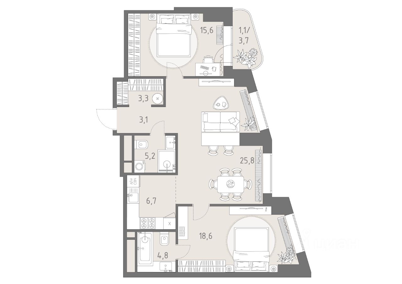 В жилом кластере Родина Парк рядом с природным заказником Долина реки Сетунь продаётся 3-комнатная квартира. Продуманная европланировка, которую легко зонировать под ваши запросы. Потолки от 3,1 м. "Родина Парк" — премиальный семейный кластер с образовательным медиакластером, строящийся на западе Москвы в окружении природного заповедника "Долина реки Сетуни". • Скидки недели на избранный пул лотов • Рассрочка 0% на выгодных условиях до 2 лет • Семейная ипотека, подбор комбо-вариантов ипотечных программ прямо в офисе продаж • Скидки 8% при 100% оплате или ипотеке. ЛОКАЦИЯ: 8 минут пешком до станции БКЛ "Давыдково". 12 минут на автомобиле до Нового Арбата. Удобные выезды на Кутузовский проспект, Аминьевское шоссе. ИНФРАСТРУКТУРА И СЕРВИСЫ ДЛЯ ЖИТЕЛЕЙ - Уникальная экосистема для развития, здоровья и творчества на территории 3,5 Га: - Первый в России образовательный медиакластер (с участием Русской медиагруппы) для творческого развития детей и взрослых с возможностью получить востребованную профессию в сфере шоу-бизнеса. - Инфраструктура и сервисы для семей с детьми на территории жилого кластера (частный детский сад, детские игровые пространства, творческие студии для занятий музыкой и танцами, безопасная и комфортная среда для детей и родителей), событийно-культурная площадка для проведения семейного досуга); - Здоровая среда (биохакинг-центр, фитнес-зал и спортивная инфраструктура во дворе, медитационные пространства, инженерные решения для освещения, свежего воздуха и очистки воды, сервисы красоты и поддержания активного долголетия); - Сервисы заботы (инфраструктура комфорта - подземный паркинг, кладовые, колясочные, консьерж- сервис, умный дом, мобильное приложение, профессиональная управляющая компания, сервисы охраны и обеспечение абсолютной безопасности) - Комьюнити резидентов (социальные пространства для дружеского и делового общения - летний атриум с уличным кинотеатром, зоны отдыха, кафе и рестораны, комьюнити-сервис с культурно- событийной программой в медиакластере); - Модуль благосостояния (комфортные пространства для работы и саморазвития - коворкинги и переговорные). ИНФРАСТРУКТУРА РАЙОНА: Насыщенная образовательная среда: филиалы МГИМО, МГУ, МГТУ, Сколково. Топовые школы: 6 лучших частных школ Москвы и области (Forbes) в 10 минутах езды. Природное окружение для пеших прогулок, спорта и отдыха. "Родина Парк" — это место, где растут и дети, и ваши возможности. Экосистема, где всё подчинено развитию — физически, профессионально, творчески.