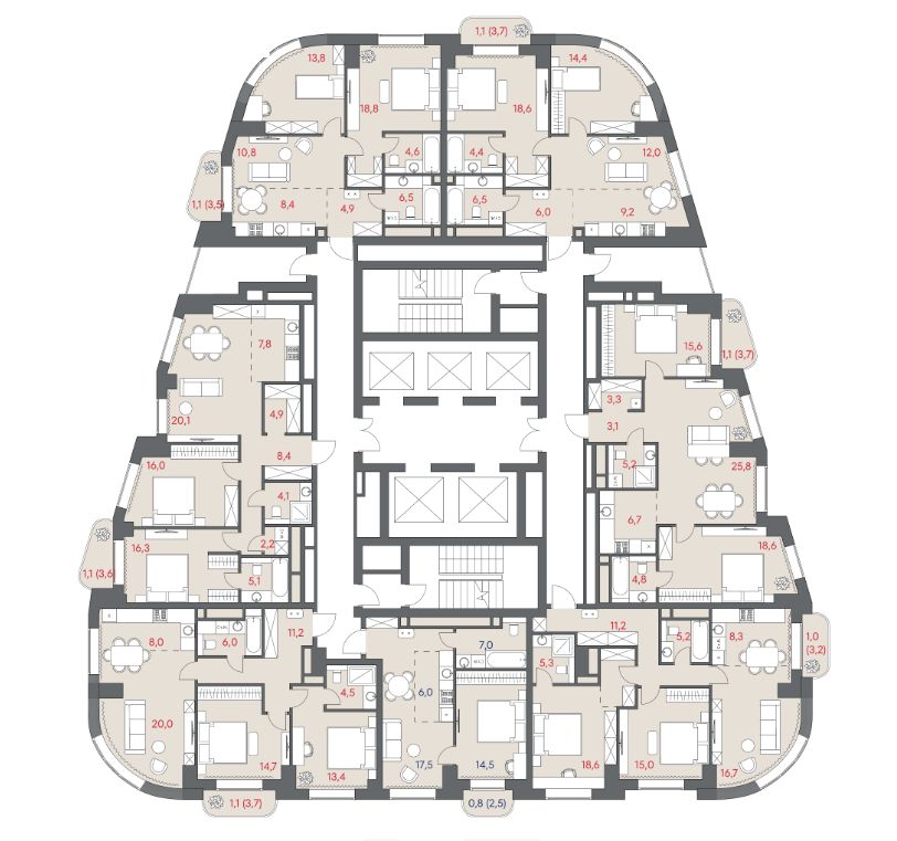 - Здоровая среда (биохакинг-центр, фитнес-зал и спортивная инфраструктура во дворе, медитационные пространства, инженерные решения для освещения, свежего воздуха и очистки воды, сервисы красоты и поддержания активного долголетия);