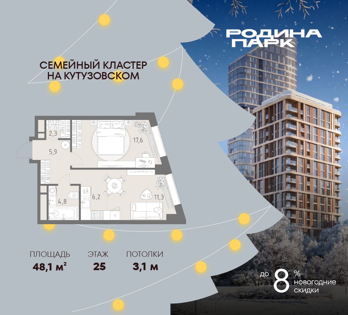 В жилом кластере Родина Парк рядом с природным заказником Долина реки Сетунь продаётся 2-комнатная квартира. Продуманная европланировка, которую легко зонировать под ваши запросы. Потолки от 3,1 м. "Родина Парк" — премиальный семейный кластер с образовательным медиакластером, строящийся на западе Москвы в окружении природного заповедника "Долина реки Сетуни". • Скидки недели на избранный пул лотов • Рассрочка 0% на выгодных условиях до 2 лет • Семейная ипотека, подбор комбо-вариантов ипотечных программ прямо в офисе продаж • Скидки 8% при 100% оплате или ипотеке. ЛОКАЦИЯ: 8 минут пешком до станции БКЛ "Давыдково". 12 минут на автомобиле до Нового Арбата. Удобные выезды на Кутузовский проспект, Аминьевское шоссе. ИНФРАСТРУКТУРА И СЕРВИСЫ ДЛЯ ЖИТЕЛЕЙ - Уникальная экосистема для развития, здоровья и творчества на территории 3,5 Га: - Первый в России образовательный медиакластер (с участием Русской медиагруппы) для творческого развития детей и взрослых с возможностью получить востребованную профессию в сфере шоу-бизнеса. - Инфраструктура и сервисы для семей с детьми на территории жилого кластера (частный детский сад, детские игровые пространства, творческие студии для занятий музыкой и танцами, безопасная и комфортная среда для детей и родителей), событийно-культурная площадка для проведения семейного досуга); - Здоровая среда (биохакинг-центр, фитнес-зал и спортивная инфраструктура во дворе, медитационные пространства, инженерные решения для освещения, свежего воздуха и очистки воды, сервисы красоты и поддержания активного долголетия); - Сервисы заботы (инфраструктура комфорта - подземный паркинг, кладовые, колясочные, консьерж- сервис, умный дом, мобильное приложение, профессиональная управляющая компания, сервисы охраны и обеспечение абсолютной безопасности) - Комьюнити резидентов (социальные пространства для дружеского и делового общения - летний атриум с уличным кинотеатром, зоны отдыха, кафе и рестораны, комьюнити-сервис с культурно- событийной программой в медиакластере); - Модуль благосостояния (комфортные пространства для работы и саморазвития - коворкинги и переговорные). ИНФРАСТРУКТУРА РАЙОНА: Насыщенная образовательная среда: филиалы МГИМО, МГУ, МГТУ, Сколково. Топовые школы: 6 лучших частных школ Москвы и области (Forbes) в 10 минутах езды. Природное окружение для пеших прогулок, спорта и отдыха. "Родина Парк" — это место, где растут и дети, и ваши возможности. Экосистема, где всё подчинено развитию — физически, профессионально, творчески.