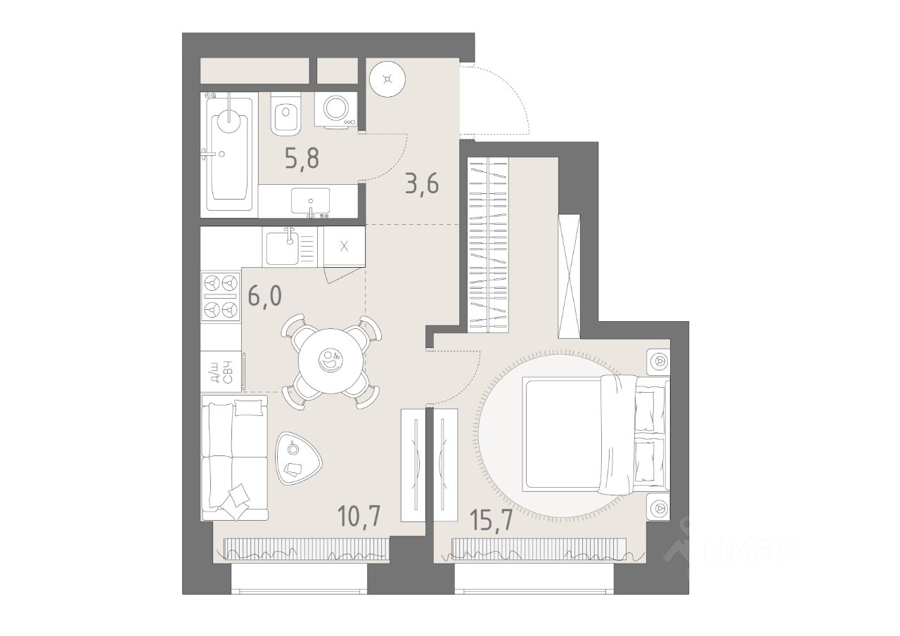 Продуманная европланировка, которую легко зонировать под ваши запросы. Потолки от 3,1 м.