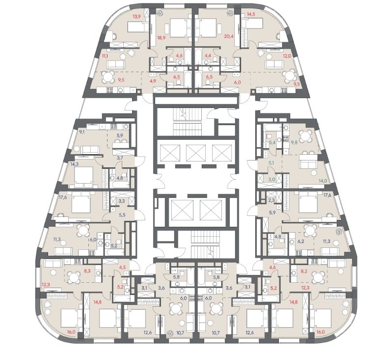 - Здоровая среда (биохакинг-центр, фитнес-зал и спортивная инфраструктура во дворе, медитационные пространства, инженерные решения для освещения, свежего воздуха и очистки воды, сервисы красоты и поддержания активного долголетия);