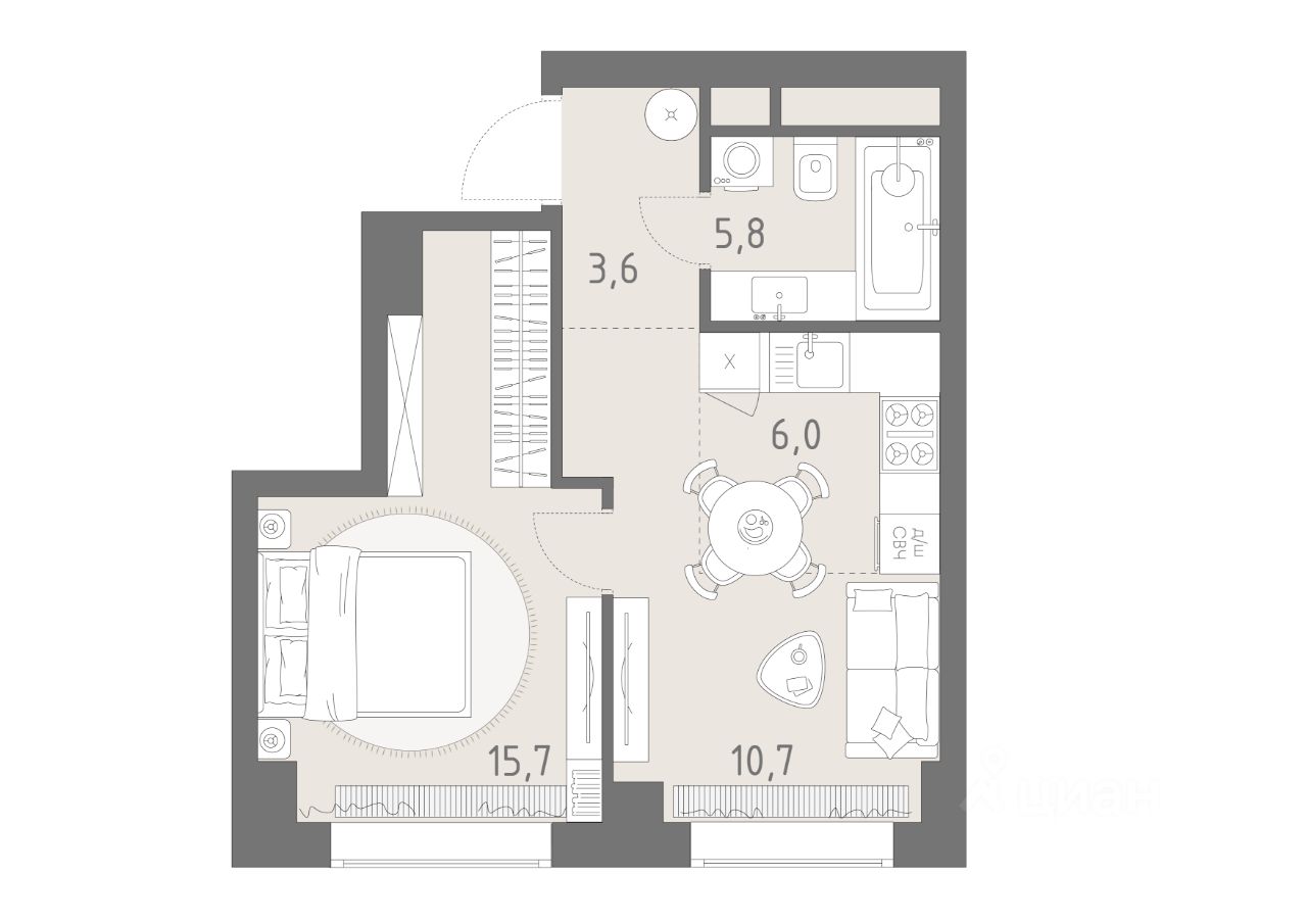 Продуманная европланировка, которую легко зонировать под ваши запросы. Потолки от 3,1 м.