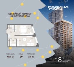 В жилом кластере Родина Парк рядом с природным заказником Долина реки Сетунь продаётся 2-комнатная квартира.