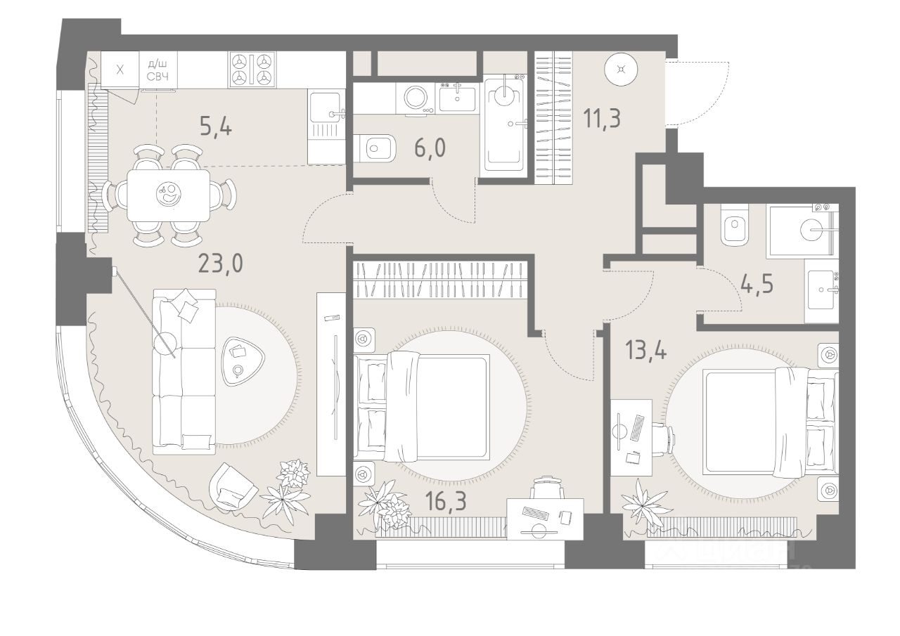 Продуманная европланировка, которую легко зонировать под ваши запросы. Потолки от 3,1 м.