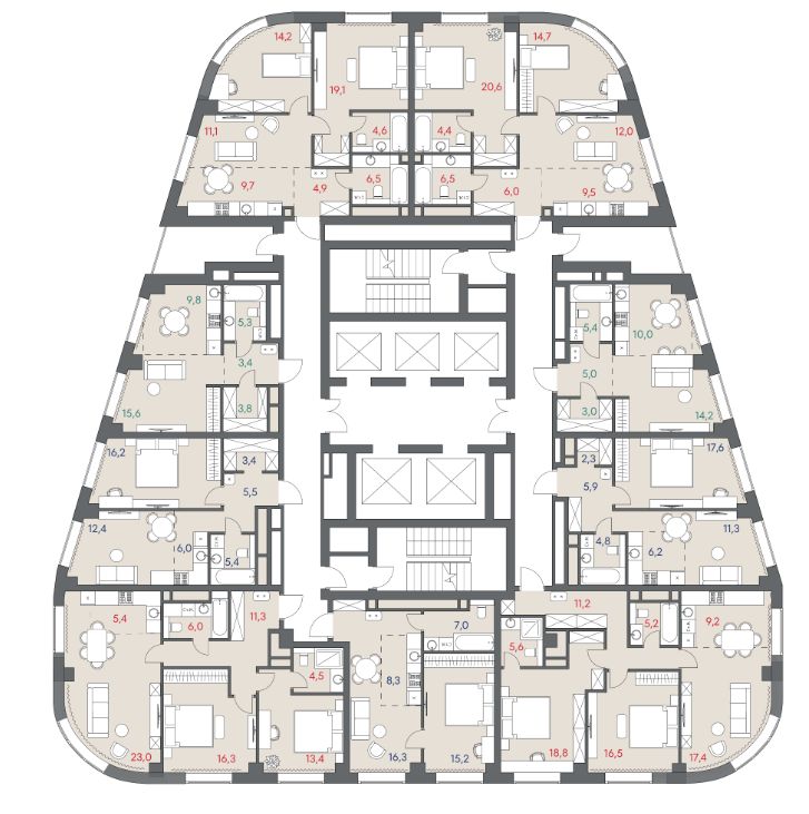 - Здоровая среда (биохакинг-центр, фитнес-зал и спортивная инфраструктура во дворе, медитационные пространства, инженерные решения для освещения, свежего воздуха и очистки воды, сервисы красоты и поддержания активного долголетия);