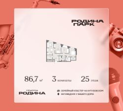 В жилом кластере Родина Парк рядом с природным заказником Долина реки Сетунь продаётся 3-комнатная квартира. Продуманная европланировка, которую легко зонировать под ваши запросы. Потолки от 3,1 м. "Родина Парк" — премиальный семейный кластер с образовательным медиакластером, строящийся на западе Москвы в окружении природного заповедника "Долина реки Сетуни". • Скидки недели на избранный пул лотов • Рассрочка 0% на выгодных условиях до 2 лет • Семейная ипотека, подбор комбо-вариантов ипотечных программ прямо в офисе продаж • Скидки 8% при 100% оплате или ипотеке. ЛОКАЦИЯ: 8 минут пешком до станции БКЛ "Давыдково". 12 минут на автомобиле до Нового Арбата. Удобные выезды на Кутузовский проспект, Аминьевское шоссе. ИНФРАСТРУКТУРА И СЕРВИСЫ ДЛЯ ЖИТЕЛЕЙ - Уникальная экосистема для развития, здоровья и творчества на территории 3,5 Га: - Первый в России образовательный медиакластер (с участием Русской медиагруппы) для творческого развития детей и взрослых с возможностью получить востребованную профессию в сфере шоу-бизнеса. - Инфраструктура и сервисы для семей с детьми на территории жилого кластера (частный детский сад, детские игровые пространства, творческие студии для занятий музыкой и танцами, безопасная и комфортная среда для детей и родителей), событийно-культурная площадка для проведения семейного досуга); - Здоровая среда (биохакинг-центр, фитнес-зал и спортивная инфраструктура во дворе, медитационные пространства, инженерные решения для освещения, свежего воздуха и очистки воды, сервисы красоты и поддержания активного долголетия); - Сервисы заботы (инфраструктура комфорта - подземный паркинг, кладовые, колясочные, консьерж- сервис, умный дом, мобильное приложение, профессиональная управляющая компания, сервисы охраны и обеспечение абсолютной безопасности) - Комьюнити резидентов (социальные пространства для дружеского и делового общения - летний атриум с уличным кинотеатром, зоны отдыха, кафе и рестораны, комьюнити-сервис с культурно- событийной программой в медиакластере); - Модуль благосостояния (комфортные пространства для работы и саморазвития - коворкинги и переговорные). ИНФРАСТРУКТУРА РАЙОНА: Насыщенная образовательная среда: филиалы МГИМО, МГУ, МГТУ, Сколково. Топовые школы: 6 лучших частных школ Москвы и области (Forbes) в 10 минутах езды. Природное окружение для пеших прогулок, спорта и отдыха. "Родина Парк" — это место, где растут и дети, и ваши возможности. Экосистема, где всё подчинено развитию — физически, профессионально, творчески.