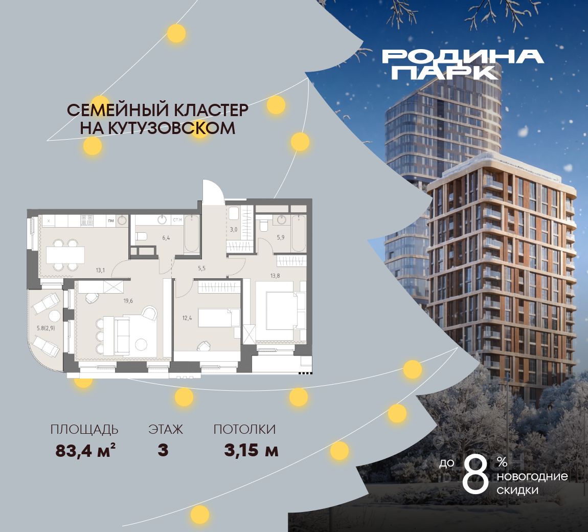 В жилом кластере Родина Парк рядом с природным заказником Долина реки Сетунь продаётся 3-комнатная квартира. Продуманная европланировка, которую легко зонировать под ваши запросы. Потолки от 3,1 м. "Родина Парк" — премиальный семейный кластер с образовательным медиакластером, строящийся на западе Москвы в окружении природного заповедника "Долина реки Сетуни". • Скидки недели на избранный пул лотов • Рассрочка 0% на выгодных условиях до 2 лет • Семейная ипотека, подбор комбо-вариантов ипотечных программ прямо в офисе продаж • Скидки 8% при 100% оплате или ипотеке. ЛОКАЦИЯ: 8 минут пешком до станции БКЛ "Давыдково". 12 минут на автомобиле до Нового Арбата. Удобные выезды на Кутузовский проспект, Аминьевское шоссе. ИНФРАСТРУКТУРА И СЕРВИСЫ ДЛЯ ЖИТЕЛЕЙ - Уникальная экосистема для развития, здоровья и творчества на территории 3,5 Га: - Первый в России образовательный медиакластер (с участием Русской медиагруппы) для творческого развития детей и взрослых с возможностью получить востребованную профессию в сфере шоу-бизнеса. - Инфраструктура и сервисы для семей с детьми на территории жилого кластера (частный детский сад, детские игровые пространства, творческие студии для занятий музыкой и танцами, безопасная и комфортная среда для детей и родителей), событийно-культурная площадка для проведения семейного досуга); - Здоровая среда (биохакинг-центр, фитнес-зал и спортивная инфраструктура во дворе, медитационные пространства, инженерные решения для освещения, свежего воздуха и очистки воды, сервисы красоты и поддержания активного долголетия); - Сервисы заботы (инфраструктура комфорта - подземный паркинг, кладовые, колясочные, консьерж- сервис, умный дом, мобильное приложение, профессиональная управляющая компания, сервисы охраны и обеспечение абсолютной безопасности) - Комьюнити резидентов (социальные пространства для дружеского и делового общения - летний атриум с уличным кинотеатром, зоны отдыха, кафе и рестораны, комьюнити-сервис с культурно- событийной программой в медиакластере); - Модуль благосостояния (комфортные пространства для работы и саморазвития - коворкинги и переговорные). ИНФРАСТРУКТУРА РАЙОНА: Насыщенная образовательная среда: филиалы МГИМО, МГУ, МГТУ, Сколково. Топовые школы: 6 лучших частных школ Москвы и области (Forbes) в 10 минутах езды. Природное окружение для пеших прогулок, спорта и отдыха. "Родина Парк" — это место, где растут и дети, и ваши возможности. Экосистема, где всё подчинено развитию — физически, профессионально, творчески.