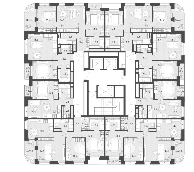 - Здоровая среда (биохакинг-центр, фитнес-зал и спортивная инфраструктура во дворе, медитационные пространства, инженерные решения для освещения, свежего воздуха и очистки воды, сервисы красоты и поддержания активного долголетия);