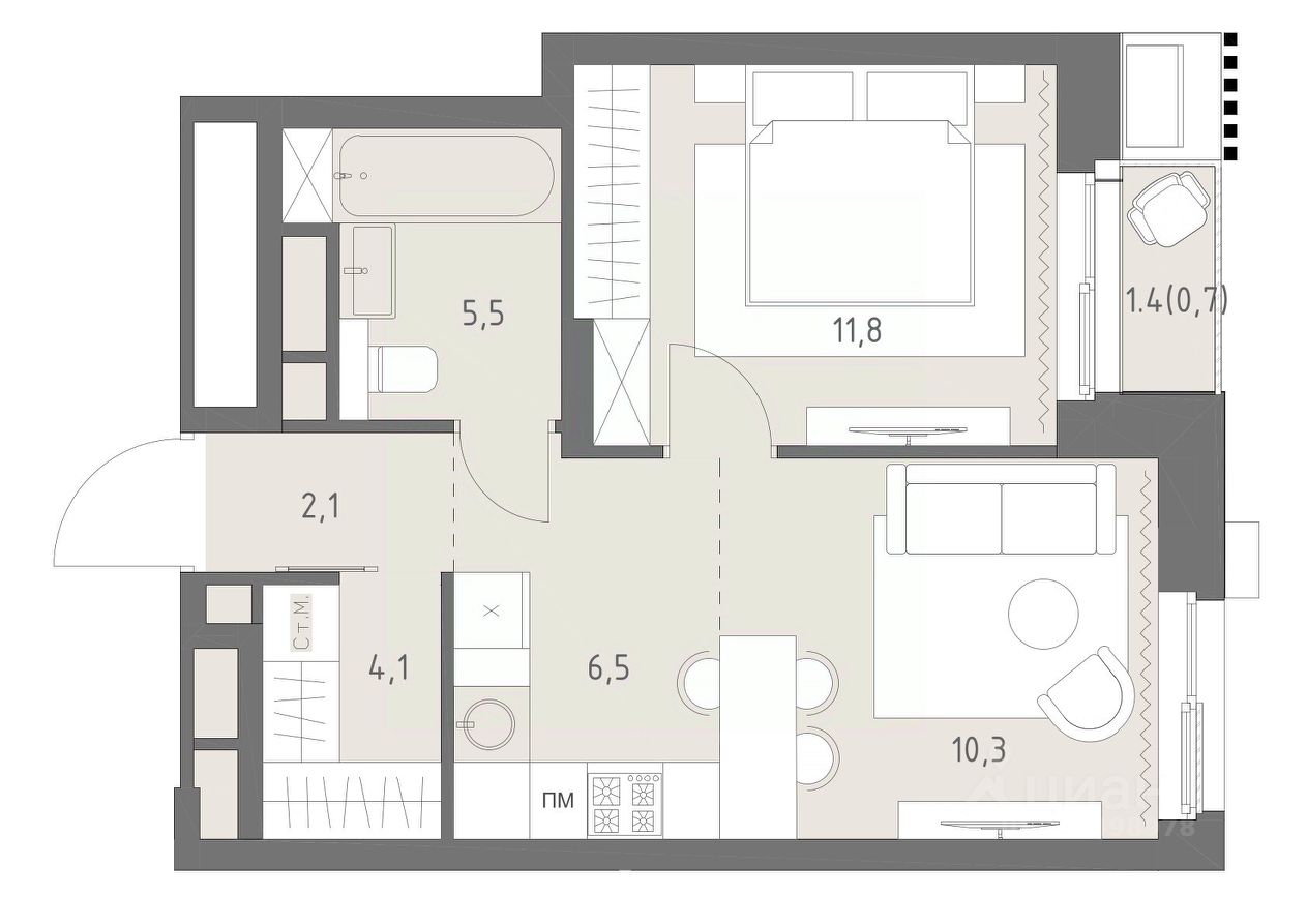 Общая площадь41 м²