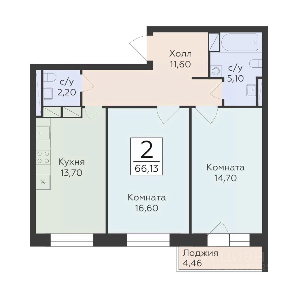 Продается 2-к квартира площадью 66.13 кв. м с черновой отделкой. Квартира расположена на 8 этаже 19 этажного дома, в 201 корпусе.