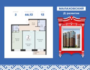 Продается 2-к квартира площадью 66.13 кв. м с черновой отделкой. Квартира расположена на 13 этаже 19 этажного дома, в 201 корпусе.
