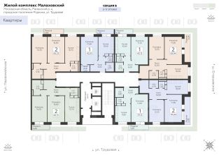Планировки комплекса "Малаховский" функциональны и эргономичны, что упрощает зонирование и расстановку мебели. Квартиры оснащены гардеробными, лоджиями с панорамным остеклением, двумя санузлами (даже в однокомнатных) и просторными прихожими.